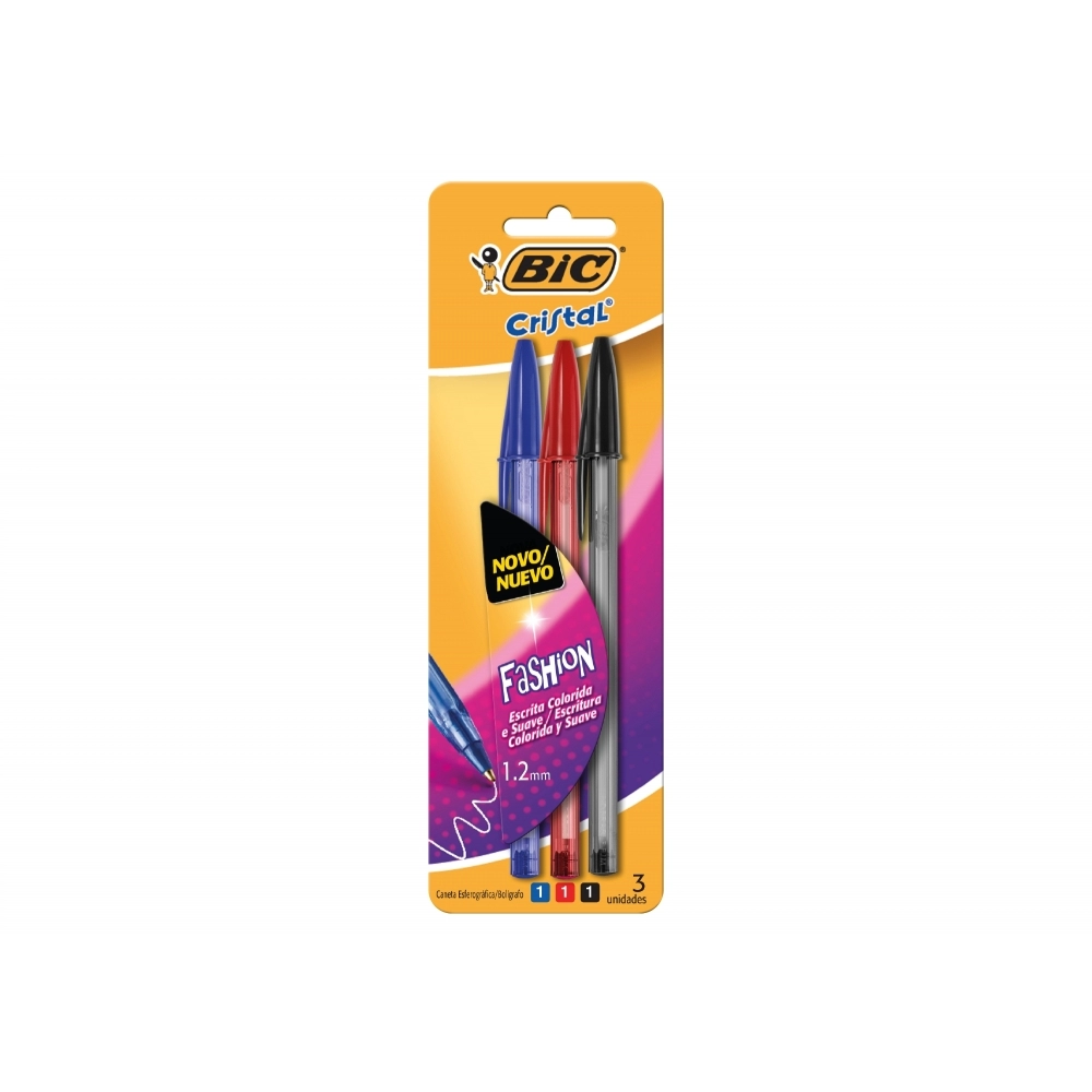 UTENSILIOS>CANETA BIC DESLIZA C/3UN PT/AZ/VM BL
