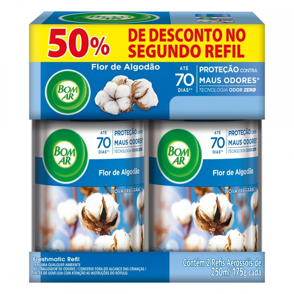 LIMPEZA>ESSENCIAL HOME>(P)2BOM AR FRESH FLOR DE ALGODAO 250ML 50% DESC 2º REF