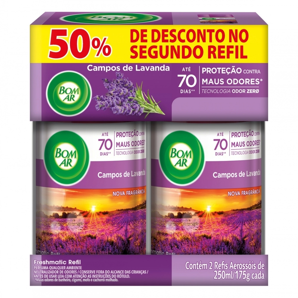 LIMPEZA>ESSENCIAL HOME>(P)2BOM AR FRESH LAVANDA 250ML 50% DESC 2º REF